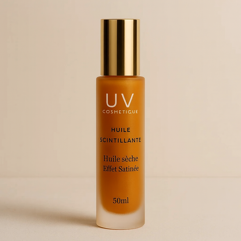 Unveil your skin’s natural radiance with UV Shimmering Body Oil. This lightweight, dry oil formula deeply nourishes while leaving a soft, satiny glow with a touch of golden shimmer. Perfect for enhancing your summer tan or adding a luminous finish to your everyday look.